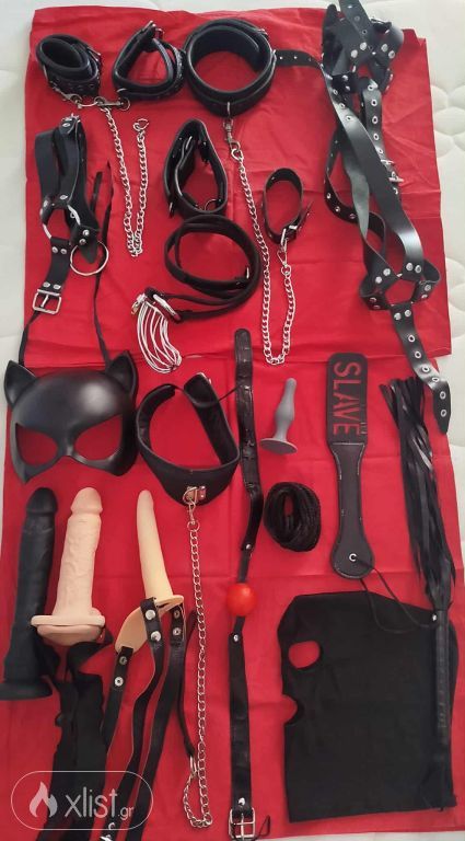 Διαθέτω μεγάλη συλλογή από sex toys (Strap on, Σφήνες, Ζώνη Αγνότητας, Μαστίγια, Κλιπς θηλών, Βαρίδια, Γόβες, Αθλητικά, Κάλτσες, Λουρί Σκύλου, Χειροπέδες)κ.α.